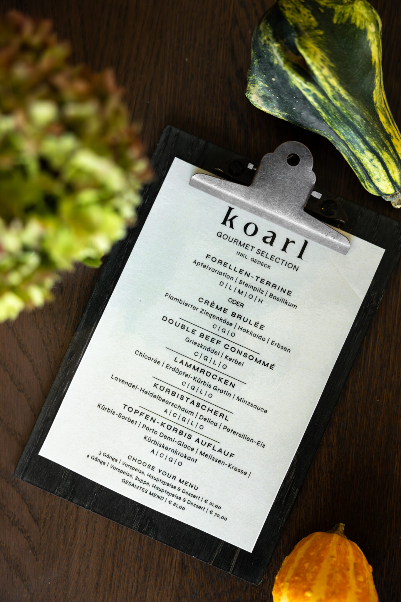 Kulinarische Gaumenfreuden mit Koarls saisonal abgestimmten Gourmet Selection Menüs.